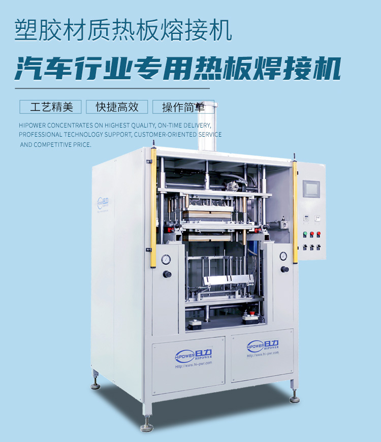 熱板機(jī)也稱為熱板式塑料焊接機(jī)、熱板式塑料熔接機(jī)、熱板式塑膠焊接機(jī)、熱板式塑膠熔接機(jī)、熱板式焊接機(jī)、熱板式熔接機(jī)、塑料熱板式焊接機(jī)、塑膠熱板式熔接機(jī)。主要主要適合焊接產(chǎn)品面積大、不規(guī)范的塑料產(chǎn)品,如:汽車手套箱焊接,汽車保險(xiǎn)杠焊接,汽車儀表臺(tái)焊接,汽車水箱焊接,汽車尾燈熱板焊接,蓄電池?zé)岚搴附拥取?/span>