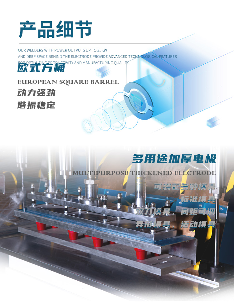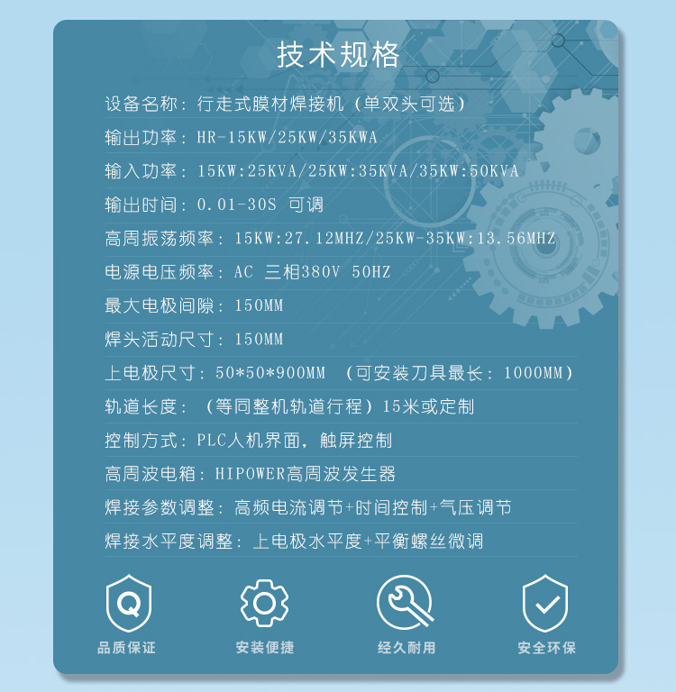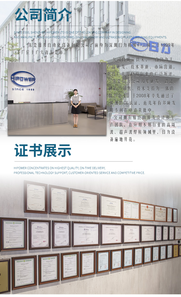 自動(dòng)行走式高周波帆布熔接機(jī)的用途: ※通過高周波的原理,用來做高周波PVC沼氣池熔接、PVC蓄水池熔接、PVC兒童游泳池熔接,也可以用來做高周波汽車篷布帆 布接駁、高周波帳篷布熔接、高周波電影幕布熔接、高周波膜結(jié)構(gòu)拼接、戶外膜結(jié)構(gòu)焊接、膜結(jié)構(gòu)熔接、高頻戶外遮陽布熔接、 高頻廣告噴繪布焊接、高頻PVC布熔接或含有PVC成分的任何材質(zhì)的軟性塑膠塑料的高周波熔接或拼接。通過高周波的作用后,被 高頻熔接的材料,表面光滑平整且美觀牢固。 自動(dòng)行走式高周波帆布熔接機(jī)的特點(diǎn): ※自動(dòng)行走式高周波帆布熔接機(jī),采用智能化PLC人機(jī)界面操作系統(tǒng),步進(jìn)或伺服馬達(dá)驅(qū)動(dòng)。自動(dòng)行走,位置精準(zhǔn),無需搬動(dòng)材料 和機(jī)器。一條接縫一次性完成,接縫整齊,無皺紋,無刀印。每分鐘可達(dá)5-10m的焊接速度??筛鶕?jù)用戶需要,選擇不同高周波功率 大小的機(jī)器,每次焊接材料的長(zhǎng)度及寬度,均可以通過改變高周波模具的尺寸長(zhǎng)短寬度,實(shí)現(xiàn)膜結(jié)構(gòu)或帆布的自動(dòng)熔接需要。機(jī)器的 內(nèi)側(cè)設(shè)有相應(yīng)跨度的放料槽,放料槽的跨度和深度可根據(jù)焊接的產(chǎn)品大小選擇。以滿足不同大小面積的帆布熔接及接駁。膜結(jié)構(gòu)帆布熔 接機(jī)的鐳射掃描定位系統(tǒng)為可選配置,方便每次焊接時(shí)精準(zhǔn)定位。 ※自動(dòng)行走式高周波帆布熔接機(jī)的高頻振蕩系統(tǒng)為歐式方形同軸結(jié)構(gòu),高周波輸出的力量穩(wěn)定強(qiáng)大。高周波熔接機(jī)內(nèi)設(shè)有高周波 NL5557火花保護(hù)系統(tǒng),可防止損壞高頻熔接模具。高周波膜結(jié)構(gòu)熔接機(jī)的焊接時(shí)間,可根據(jù)材質(zhì)厚薄不同自由設(shè)定,高周波的功率輸 出大小可調(diào)。 ※每次熔接牢固穩(wěn)定,材料厚薄均可滿足。機(jī)器料糟深寬,方便大面積連續(xù)接駁。機(jī)器可連續(xù)壓線接熔,接熔長(zhǎng)度可以自由定制。 歐洲制式方形高頻震蕩箱,出力更大,更加穩(wěn)定。機(jī)器為C型結(jié)構(gòu),機(jī)身至焊頭跨度長(zhǎng)達(dá)750mm??蛇B續(xù)壓線接熔,也可以選擇同 時(shí)雙線熔接。 ※自動(dòng)行走式高周波帆布熔接機(jī)又稱為高周波汽車篷布帆布接駁機(jī)、高周波帳篷布熔接機(jī)、高周波電影幕布熔接機(jī)、高周波膜結(jié)構(gòu) 拼接機(jī)、戶外膜結(jié)構(gòu)高周波焊接機(jī)、膜結(jié)構(gòu)高周波熔接機(jī)、高頻戶外遮陽布熔接機(jī)、高頻廣告噴繪布焊接機(jī)、高頻PVC布熔接機(jī)、高 周波塑膠塑料熔接機(jī)、高周波熔接拼接機(jī)、高周波汽車篷布焊接機(jī)、高周波戶外帳篷制作機(jī)、遮陽膜結(jié)構(gòu)高周波焊接機(jī)、廣告噴繪布 高周波接駁機(jī)、高周波熱汽球制造機(jī)、電影幕布高周波縫合機(jī)高周波帆布熔接機(jī),高周波膜結(jié)構(gòu)熔接機(jī),高周波帆布機(jī),汽車帆布熔接機(jī)。 高周波膜結(jié)構(gòu)帆布熔接機(jī)的技術(shù)規(guī)格: 機(jī) 型: HR-8KWA HR-10KWA HR-12KWA HR-15KWA HR-25KWA 高 周 功 率: 8000W 10000W 12000W 15000W 25000W電 源 電 壓: 380V 50/60HZ 高 周 頻 率: 27.12MHZ 13.56 MHZ 輸 入 功 率: 15KVA 18KVA 20KVA 25KVA 35KVA 整 流 器: 矽二極體 振 蕩 管: 7T69RB E3069 E3130 8T85RB 8T25RA 最 大 壓 力: 500kg 600kg 800kg 1000kg 1500kg 電 極 間 隔: 150 mm 活 動(dòng) 行 程: 150 mm 上模夾 尺寸:50*50*800mm 50*50*800mm 50*50*900mm 60*60*900mm 50*50*1000mm 熔 接 時(shí) 間: 0---10s <機(jī)器相關(guān)所有尺寸,均可根據(jù)用戶要求定制。因改良需要,規(guī)格變動(dòng)不另通知> |