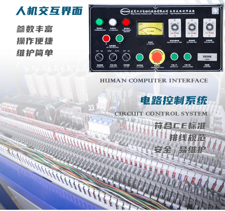 ※高周波膜結(jié)構(gòu)熔接機(jī)的高頻振蕩系統(tǒng)為歐式方形同軸結(jié)構(gòu),高周波輸出的力量穩(wěn)定強(qiáng)大。高周波熔接機(jī)內(nèi)設(shè)有高周波NL5557火花保護(hù)系統(tǒng),可防止損壞高頻熔接模具。高周波膜結(jié)構(gòu)熔接機(jī)的焊接時(shí)間,可根據(jù)材質(zhì)厚薄不同自由設(shè)定,高周波的功率輸出大小可調(diào)。