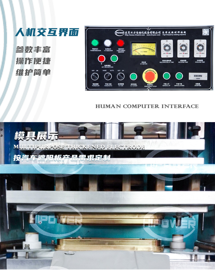 時(shí)切斷,基本上是同時(shí)完成。適用于大面積的高周波熔接裁斷,坐墊成型,大型腳墊成型,APET,PETG,GAG等環(huán)保材料的高周波柔軟線