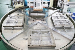 ★自動(dòng)轉(zhuǎn)盤式,轉(zhuǎn)盤上可設(shè)模位:4工位