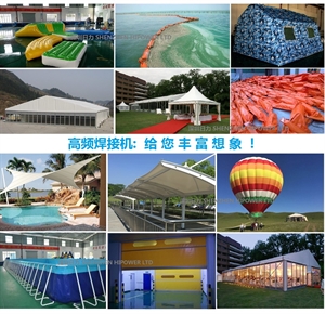 通過高周波的原理,用來做PVC氣囊,PVC下水褲,金字塔帳篷,尖頂帳篷,異形篷房,PVC蓄水池熔接,高周波PVC沼氣池熔接、拼接等等
