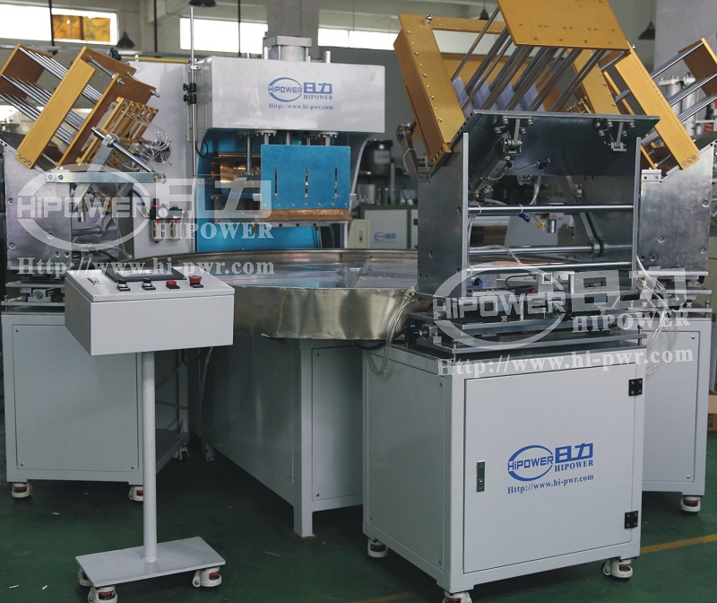 從而完成一個(gè)完整的流程。作業(yè)員按照轉(zhuǎn)盤(pán)節(jié)拍持續(xù)置入產(chǎn)品原料,高周波作業(yè)節(jié)拍高效率地自動(dòng)化完成熔接作業(yè)。用戶可自由設(shè)置作業(yè)時(shí)間,一般為8-12秒一個(gè)作業(yè)節(jié)拍。